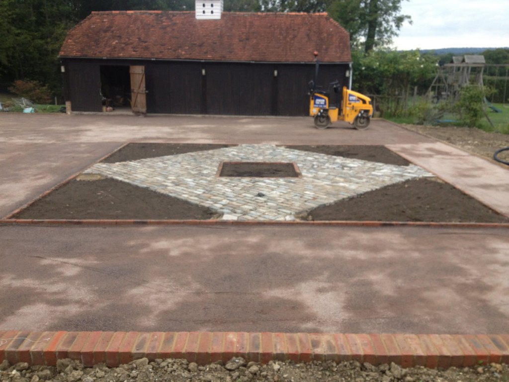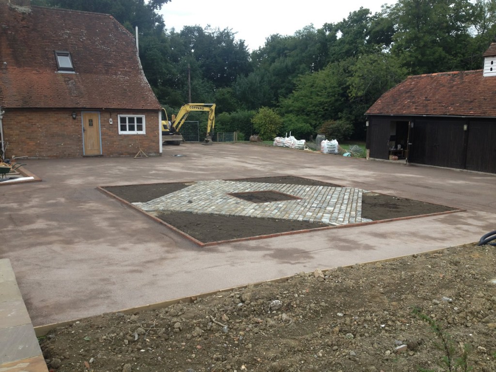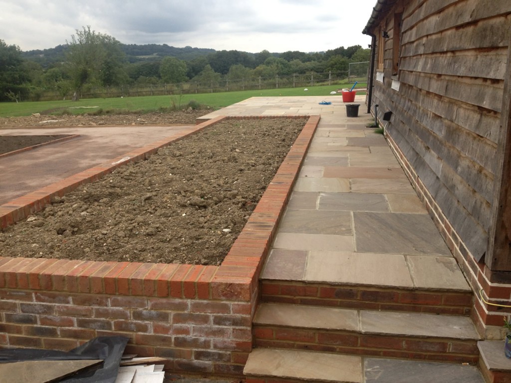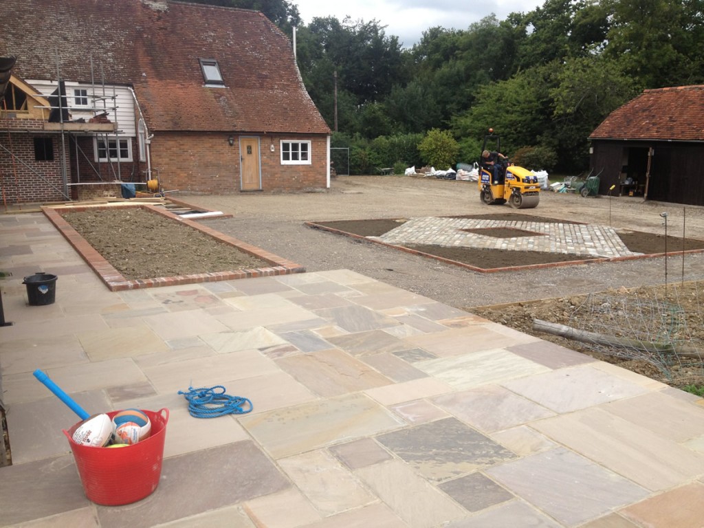The large parking area, now approached via newly installed electric gates, was broken up with further raised beds and paving, whilst still leaving plenty of room for turning and parking several cars.